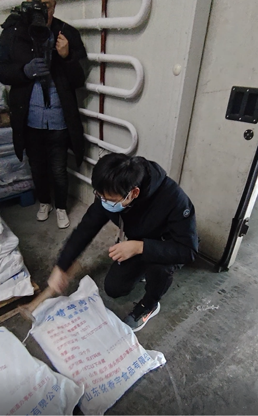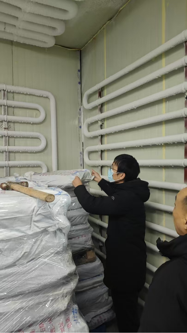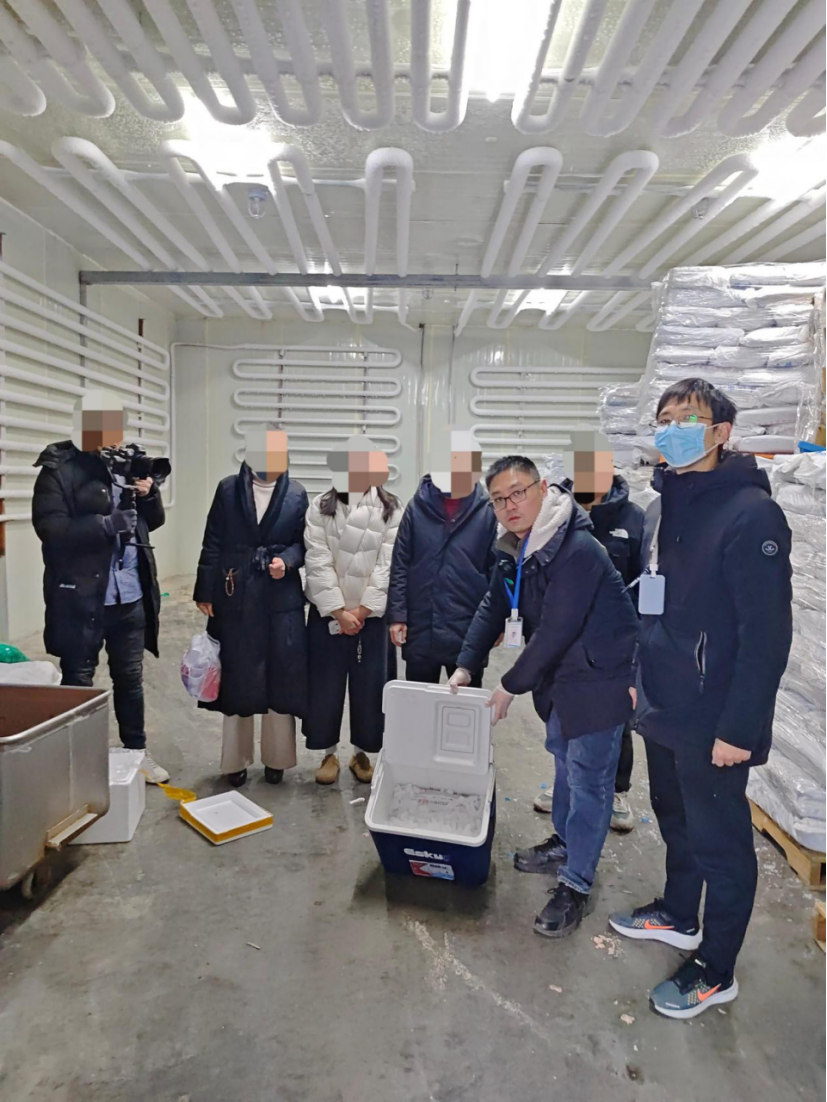 现场工作人员严格依规操作,逐一核对原料信息,随机选取代表性样本,详细记录抽样、封样和储运过程,确保抽样合法合规、可溯可查。抽取样本经干冰保鲜后第一时间送实验室检测。